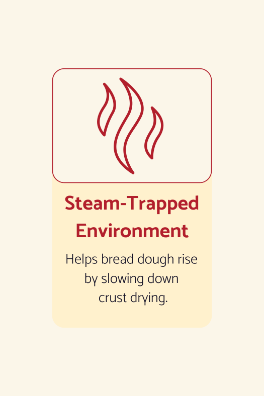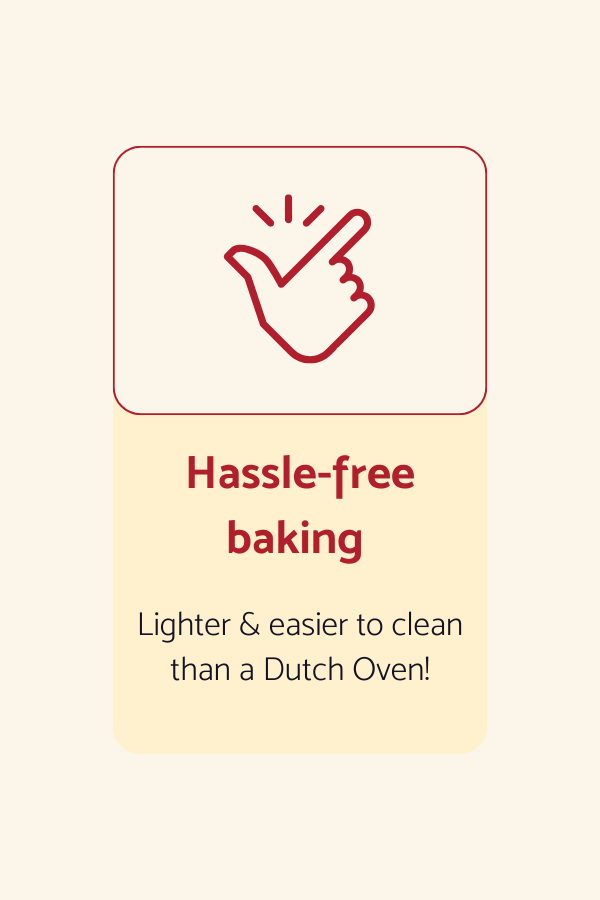 The Atome Pan is what allows you to imitate the effects of a deck oven (used in bakeries): It will keep the moisture of the dough trapped to create the perfect environment for the bread to rise and the crust to become crispy. It will also act as a heat shield to avoid burning the frozen dough!