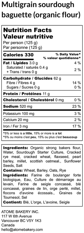 Our Multigrain Sourdough Baguette is the perfect blend of taste and nutrition. Enriched with a mix of healthy seeds, it offers a rich and beneficial taste experience for your health. Ideal for a balanced and tasty meal.