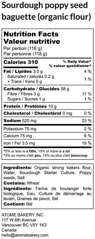 Experience the unique crunch of our Poppy Seed Sourdough Baguette. Rich in flavor and benefits, the poppy seeds add a touch of indulgence. Perfect to awaken your taste buds, it's the choice ally for a crunchy meal full of flavors.